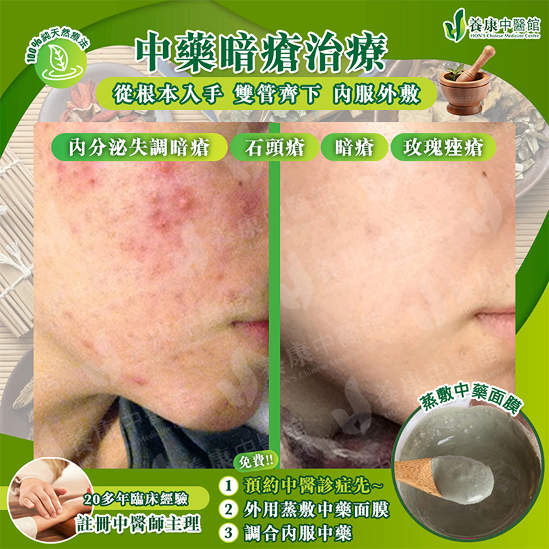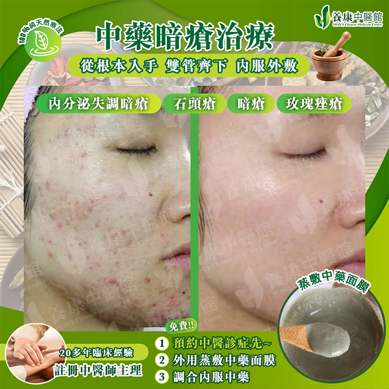 無論是暗瘡、石頭瘡、還是下巴暗瘡,背脊生暗瘡,用純天然,無副作用的中醫藥療法,從根本上解決!連暗瘡印都自然去除!